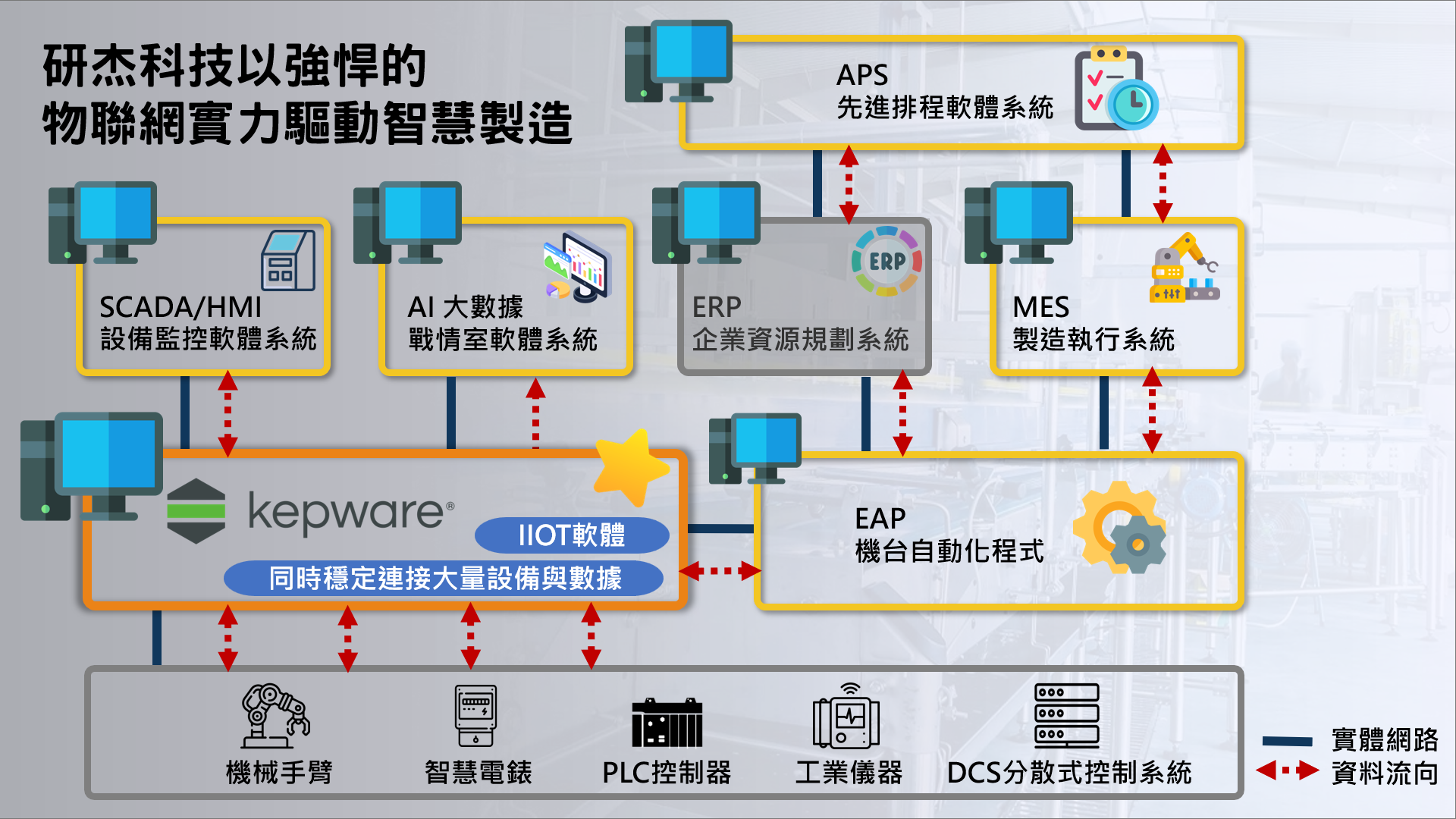 • 接收到的物品即時資料,可以多種標準通訊方式(如OPC、MQTT、REST等)提供給雲端(內部或外部)的應用資訊系統(例如MES、ERP,或各種自行開發的應用系統)。